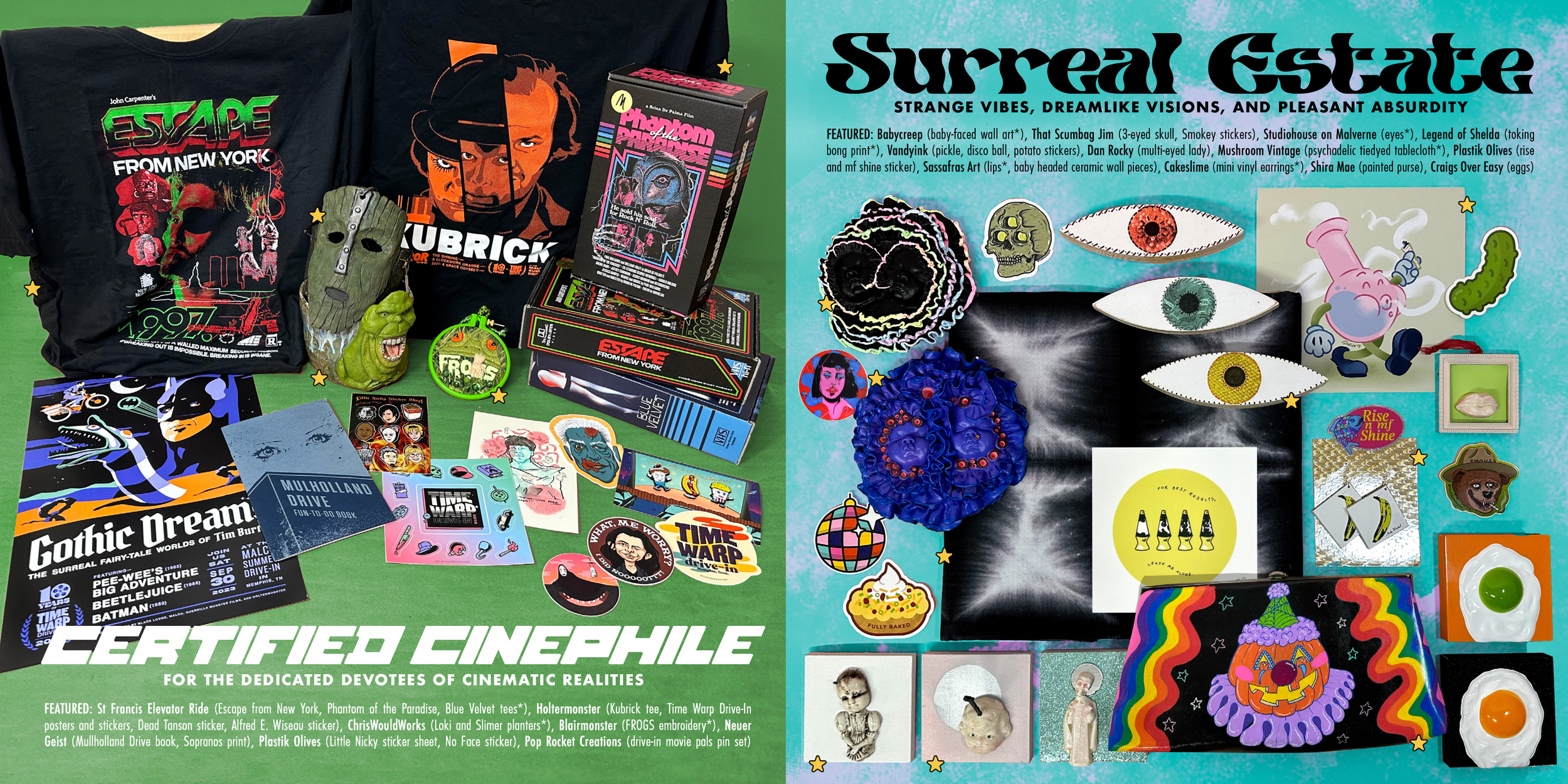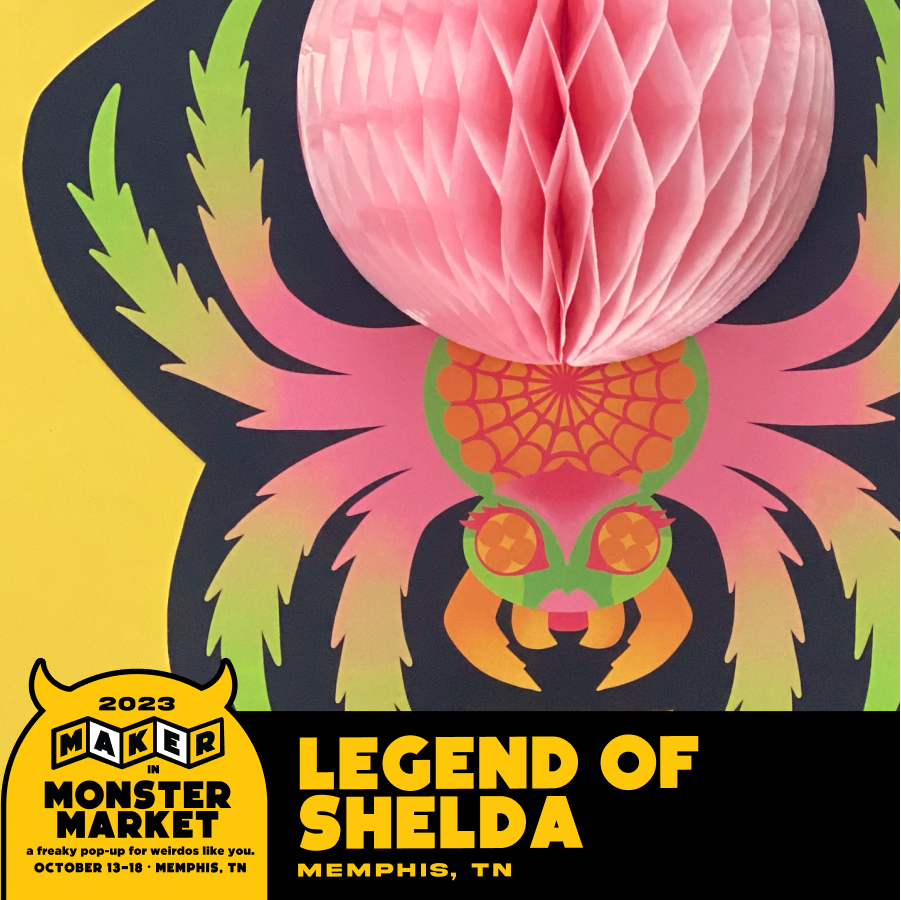 Monster Market is an annual curated pop-up retail experience curated by me, Holtermonster. I carry a juried selection of art, apparel and novelties from weirdo makers, artists, designers, and small brands all over the country. The pop-up appears somewhere new in Memphis, TN each year and is open only for the month of October. Over the years we’ve been an in-person shop, an online store, and in 2022, we had our first hybrid year, with an in-person event to kick-off the virtual season.